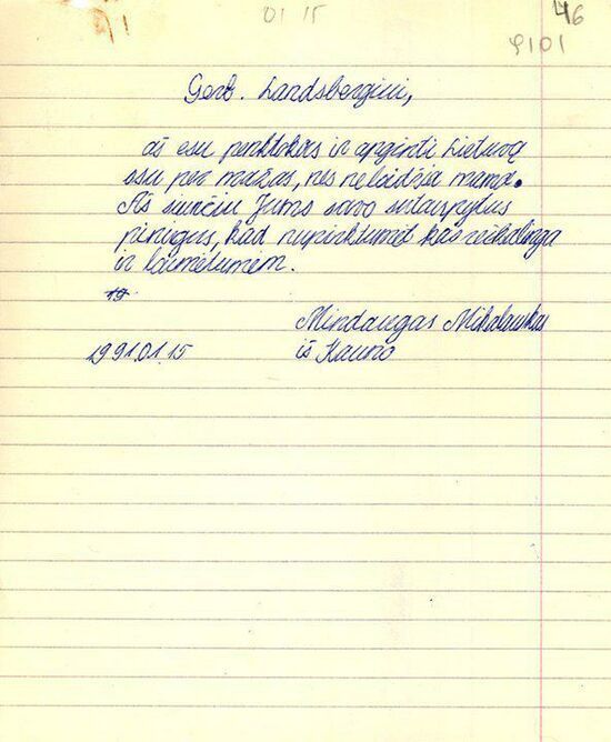 Mindaugas Mikalauskas iz Kaunasa, 15. 1. 1991«