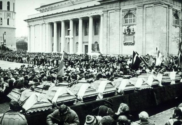 16. januarja je na pokopališču Antakalnis v Vilni potekal slovesen pogreb žrtev dogodkov pod televizijskim stolpom, ki se ga je udeležilo več kot 10.000 ljudi. Žrtve so bili: Loreta Asanavičiūtė, Virginijus Druskis, Darius Gerbutavičius, Rolandas Jankauskas, Rimantas Juknevičius, Alvydas Kanapinskas, Algimantas Petras Kavoliukas, Vytautas Koncevičius, Vidas Maciulevičius, Titas Masiulis, Alvydas Matulka, Apolinaras Juozas Povilaitis, Ignas Šimulionis in Vytautas Vaitkus.