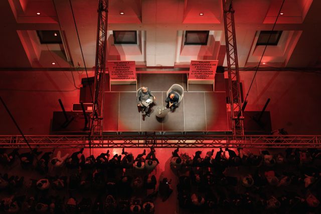 A je bilo pred tem seveda treba nekaj časa posvetiti Sirizi in Varufakisovi vlogi pri poskusu reševanja Grčije iz dolžniške krize leta 2015. (Vprašanj o tem je očitno naveličan tudi Varufakis sam, ki je po polurni debati o Sirizi z besedami »zaenkrat nismo še nič javno intelektualizirali« Žižka spodbudil, da se premakneta k naslednji temi. Ni pa jih naveličan Luka Mesec, ki je na koncu dogodka za nekaj minut zadržal mikrofon in postavil vprašanje, na katerega se je Varufakis odzval z rahlo nestrpnim »verjetno niste bili tukaj od začetka«). Varufakis je tako najprej ponovno razložil, kako je kot finančni minister poskušal izkoristiti protislovja evropskega ekonomsko-političnega sistema in s sledenjem strategiji izstopa iz evroobmočja in vrnitvi na nacionalno valuto, ki bi ju evropski bančniki na vsak način hoteli preprečiti, Grčijo poskušal rešiti pred dolžniško krizo. Fascinantna, grenka, a že večkrat slišana zgodba (o kateri je Varufakis sicer izčrpno pisal tudi v svojem bestselling političnem memoariju Je tu kakšen odrasel?). So pa bila zato bolj zanimiva naslednja vprašanja, s katerimi je Žižek dobro orisal nekaj ekonomsko-političnih problemskih sklopov, ki jih morajo sodobna levičarska gibanja znati kritično analizirati in za njih ponuditi rešitve, če želijo predstavljati resno alternativno obstoječemu ideološkemu redu na eni in fašizmu na drugi strani. Ta del pogovora lahko nekako razdelimo na dva dela: v prvem del sta se dotaknila predvsem ekonomskih problemov in pojavov, od rasti na borznih trgih, ki se je dogajala kljub ustavljanju ekonomije v času najhujših lockdownov, do prihajajoče inflacije. Drugi del pa je zadeval predvsem problem prevzemanja konstruktivnega odnosa do Izraela in Kitajske.