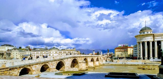 Ko grem po najstarejšem preživelem mostu čez reko Vardar – ki se imenuje Kamen Most in ločuje stari del mesta od sodobnejšega središča – ugotavljam, da je tu z željo in domišljijo mogoče najti nekaj analogij z medvojno Vilno.